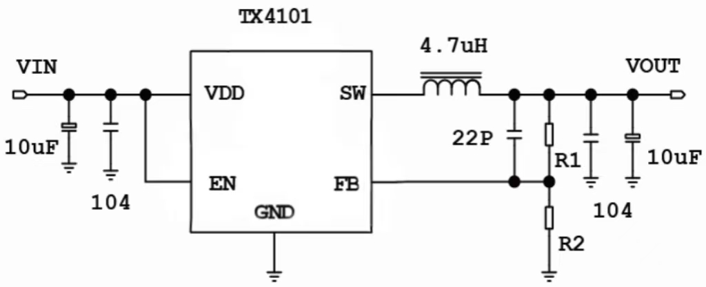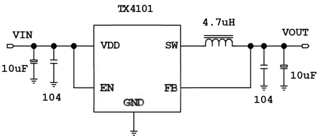 TX4101是一款开关降压型、同步整流DC-DC转换芯片