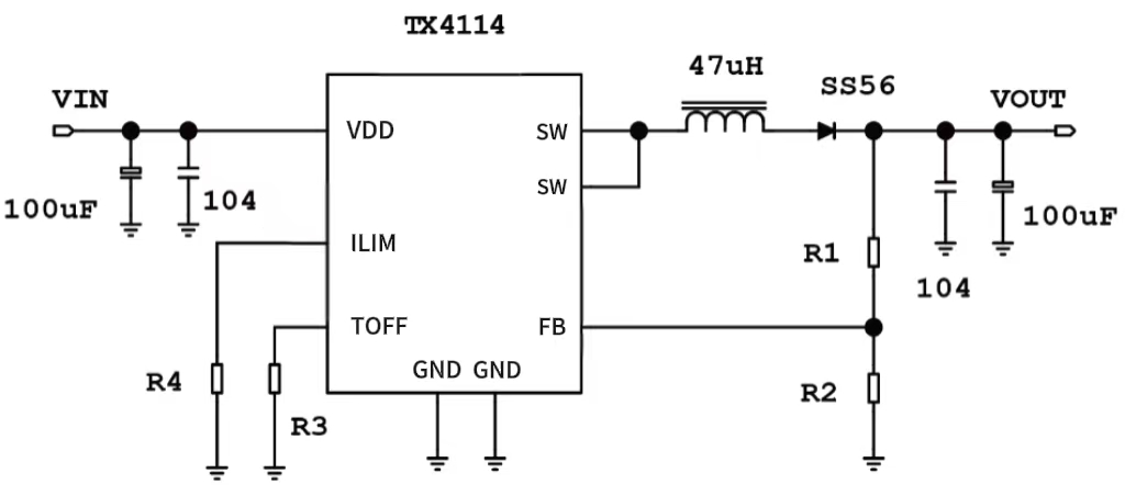 TX4114是一款开关降压型DC-DC同步整流转换芯片