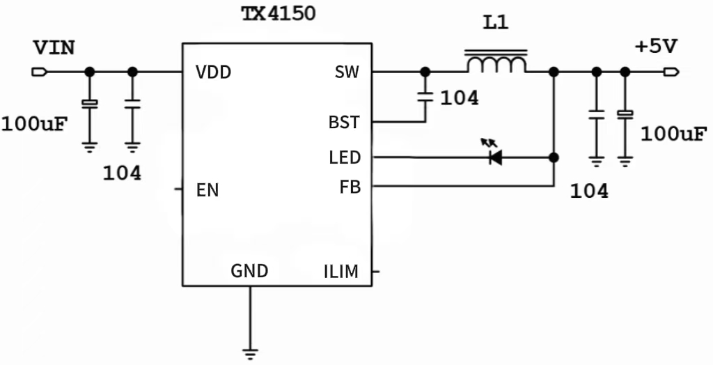TX4150 DEMO板 应用原理图 固定5V输出: